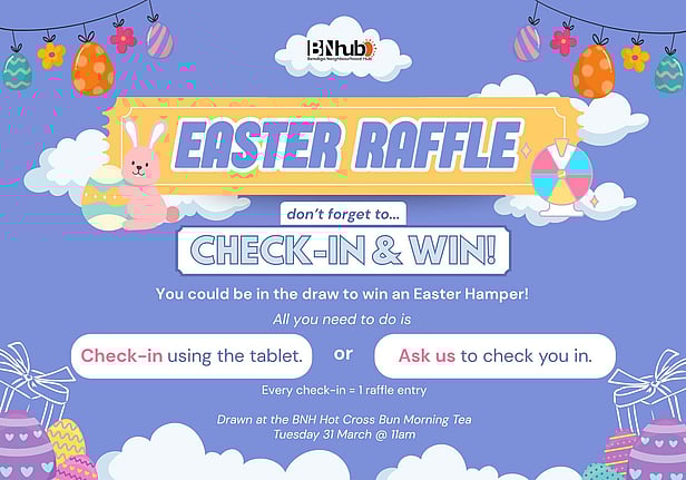 Every time you connect with the Hub, you’ll go into the draw to win a delicious Easter hamper. The more you connect, the more chances you have to win!