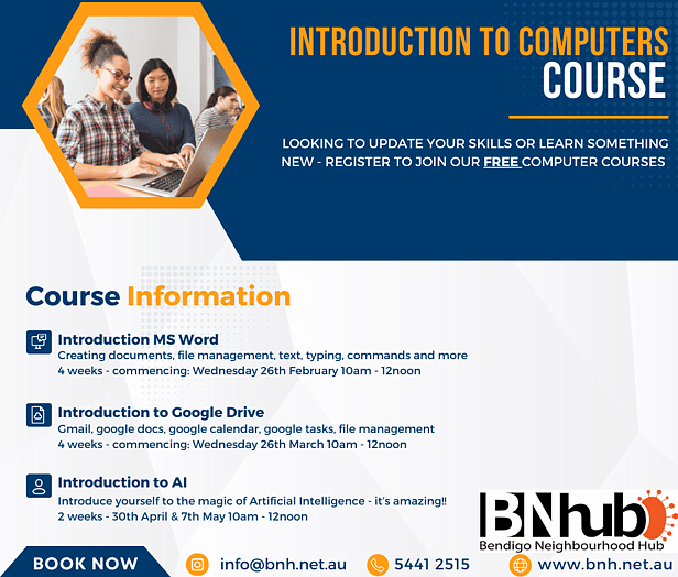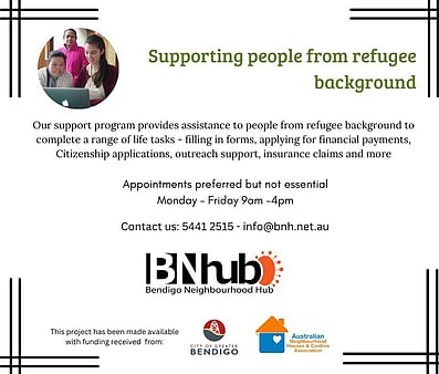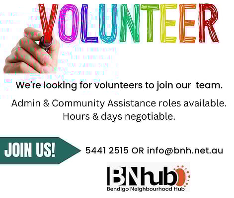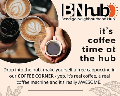 The best way to keep updated about what's happening at Bendigo Neighbourhoood Hub is to keeping checking our webpage, follow us on facebook, join our
